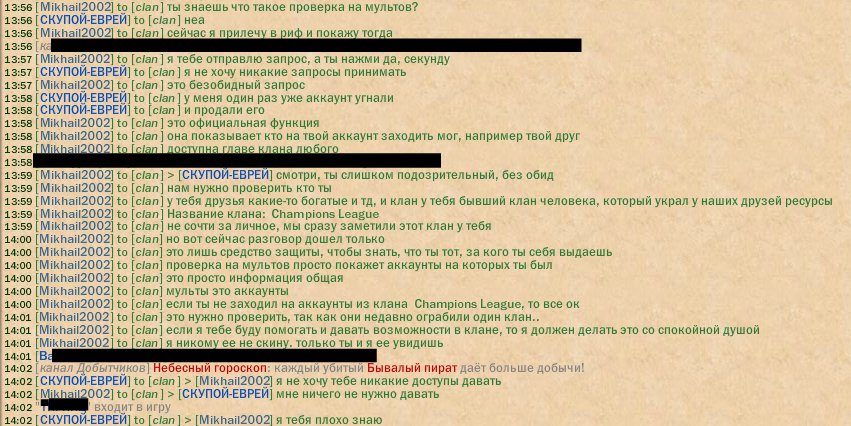 БУДЬТЕ ОСТОРОЖНЫ! Взял откуда-то комплект эпиков (13:50 [СКУПОЙ-ЕВРЕЙ] to [clan] Мне друг отдал комплект мефов, у меня есть эпик рифа по факту), что за друг не сказал, проверку проходить отказался, сделал закос под непонимающего, состоял в клане обманщика.