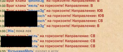 14:35 [канал Гвардейцев] Пират BLACK-LORD подбил Азлагор в координатах Горелый омут, уровень 5, 15:44! 14:35 [канал Гвардейцев] Пират BLACK-LORD подбил PeNeTRaTiNG в координатах Горелый омут, уровень 5, 17:41! 14:40 [канал Гвардейцев] Пират BLACK-LORD подбил душегуб26курская в координатах Горелый омут, уровень 5, 8:45! 14:40 [канал Гвардейцев] Пират BLACK-LORD подбил Азлагор в координатах Горелый омут, уровень 5, 14:43! 14:41 [канал Гвардейцев] Пират BLACK-LORD подбил PeNeTRaTiNG в координатах Горелый омут, уровень 5, 14:42! 14:41 [канал Гвардейцев] Пират BLACK-LORD подбил душегуб26курская в координатах Горелый омут, уровень 5, 7:32!